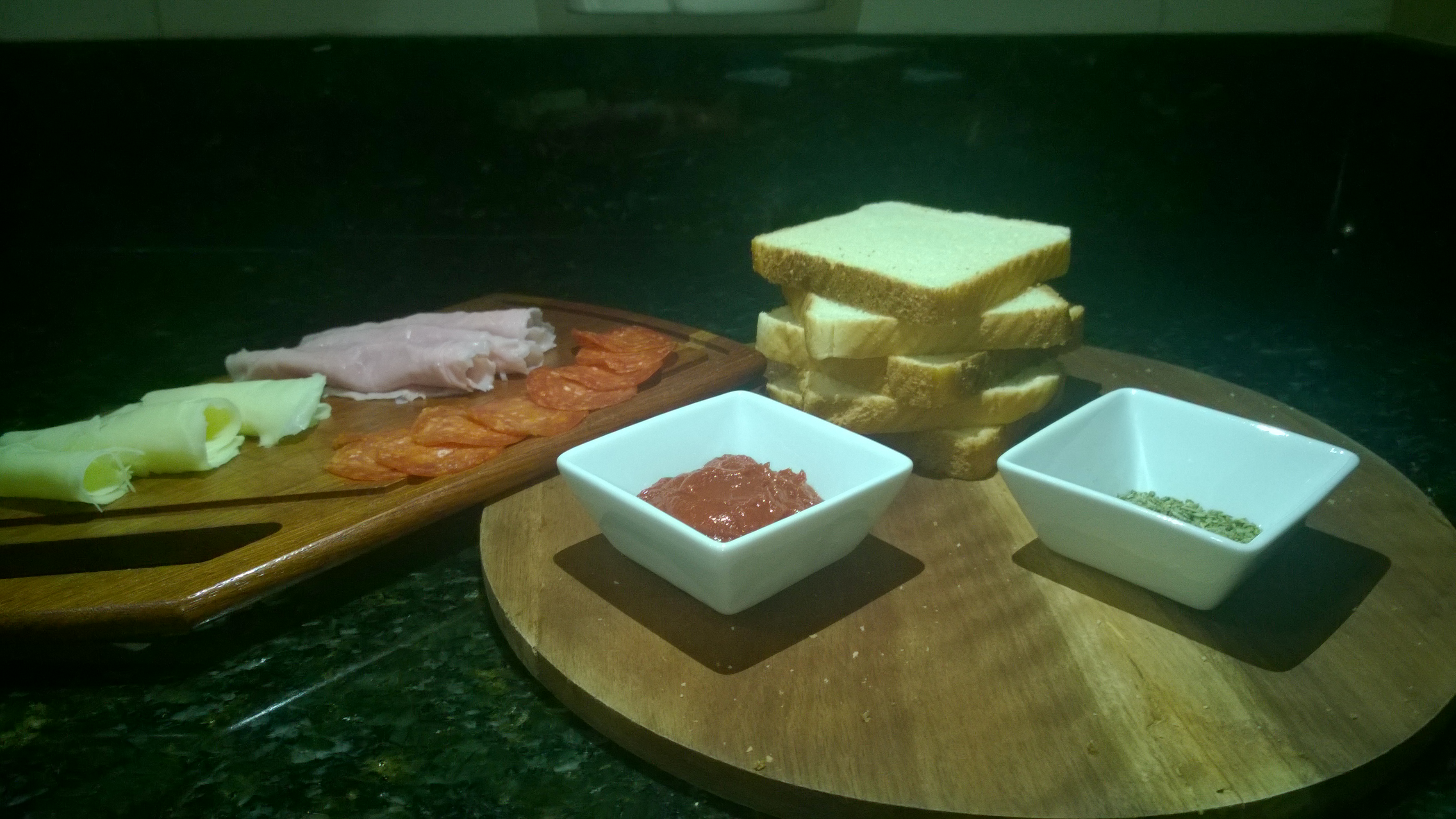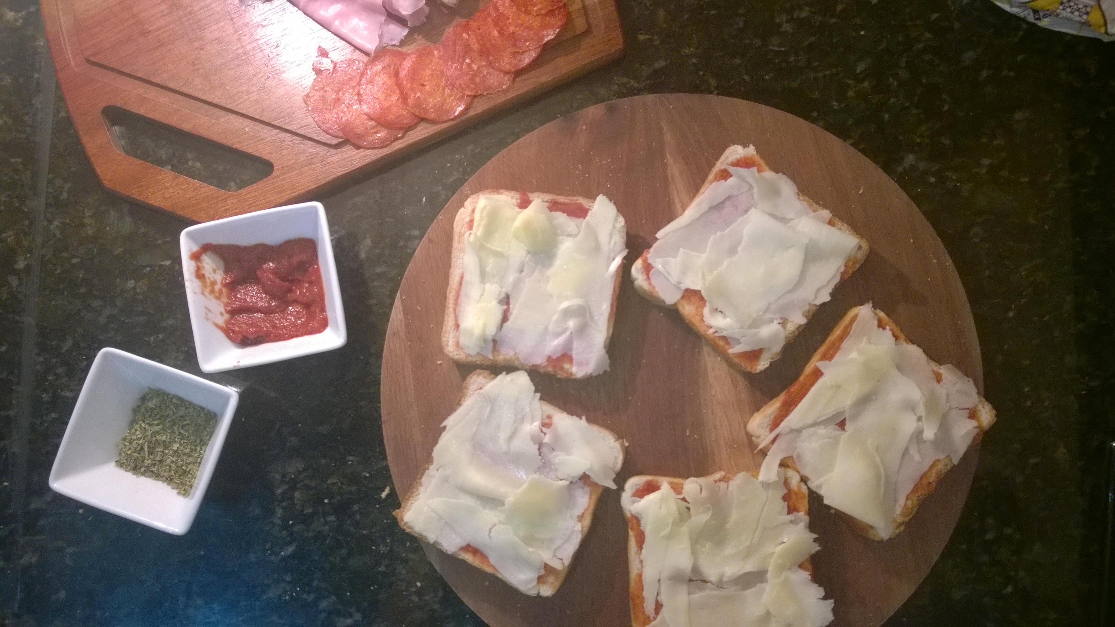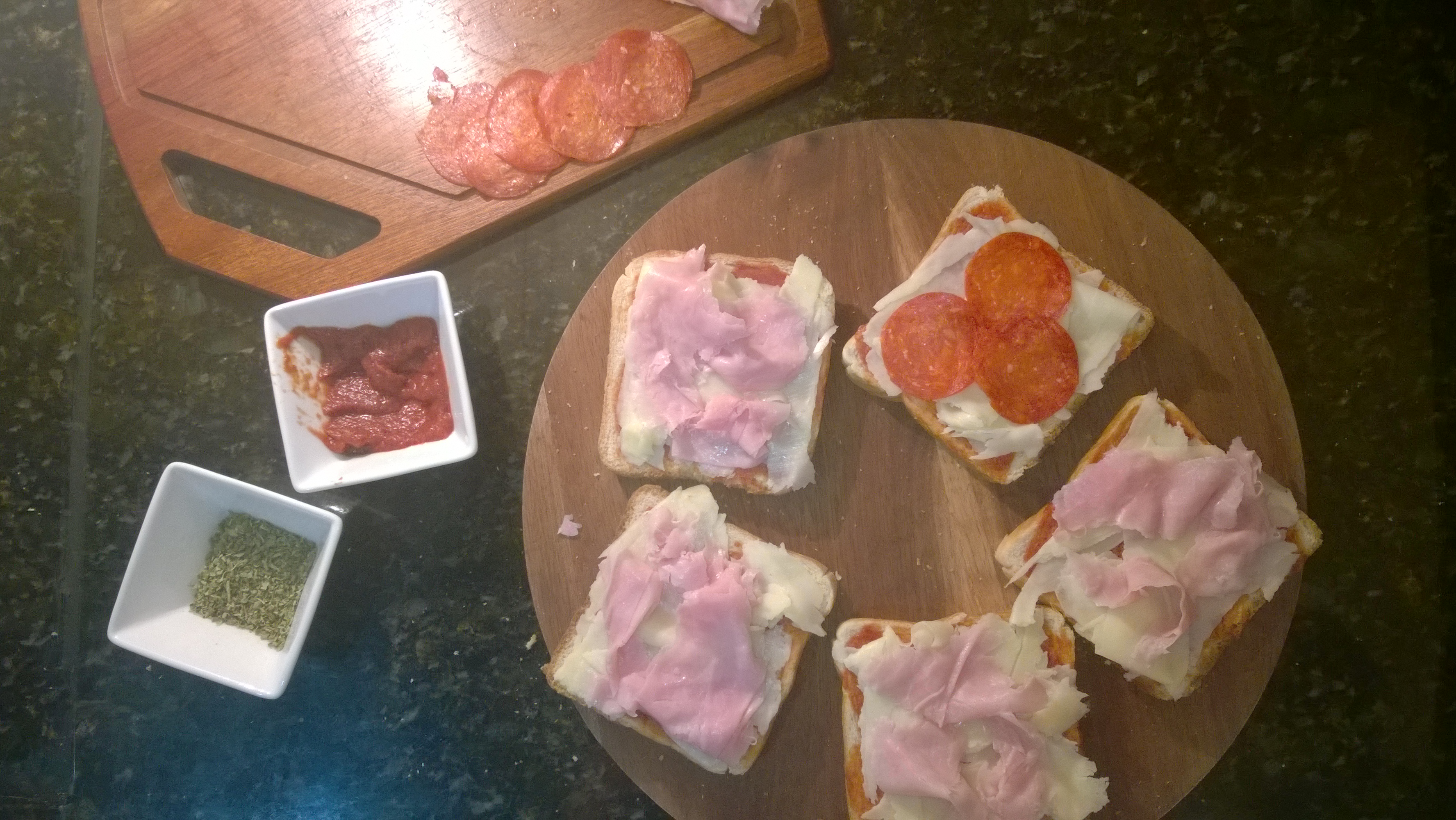 Coloque tudo que você quiser. Nós colocamos presunto e pepperoni.
